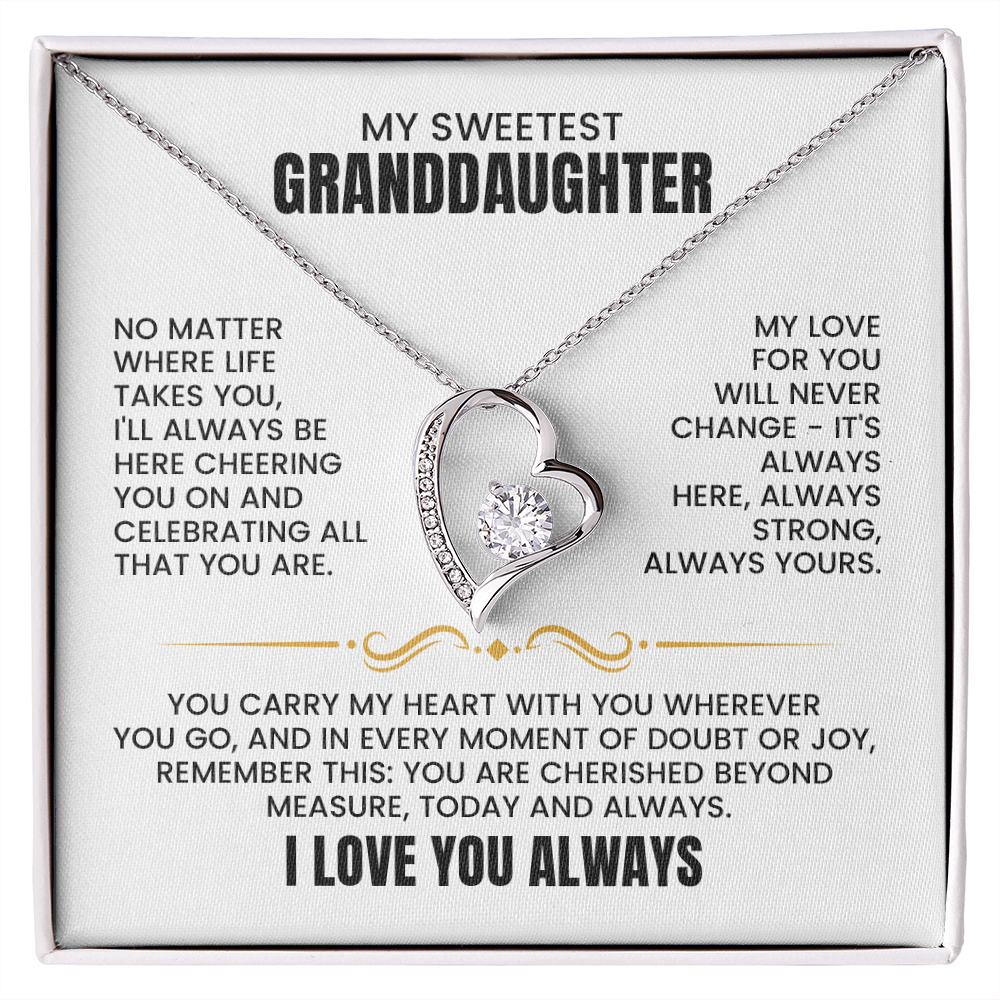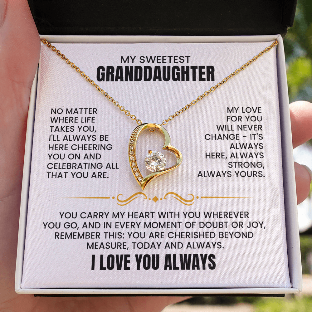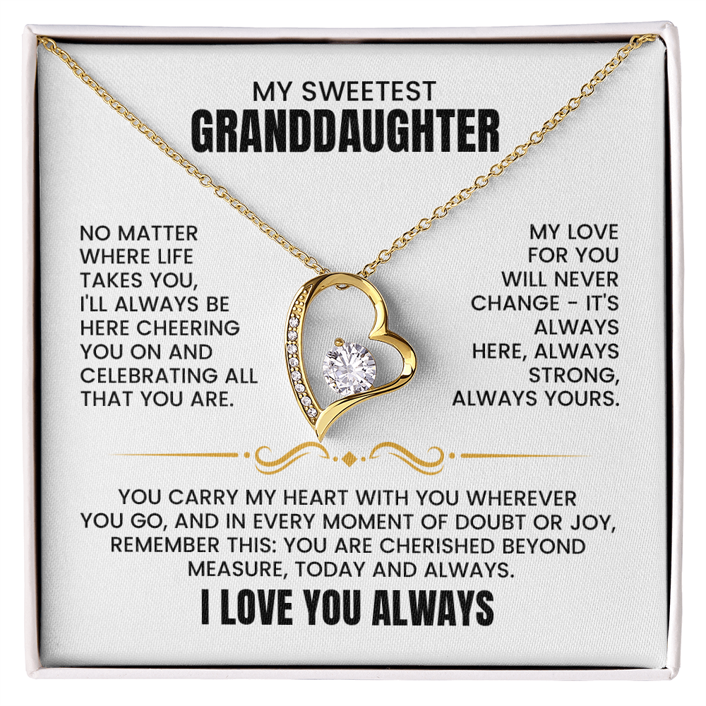 Show your precious granddaughter just how deeply she's loved with the breathtaking Forever Love Necklace - a timeless treasure she'll cherish for years to come.