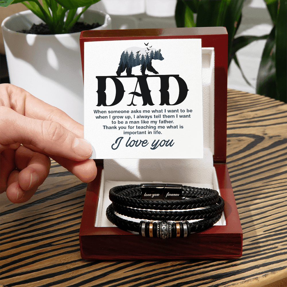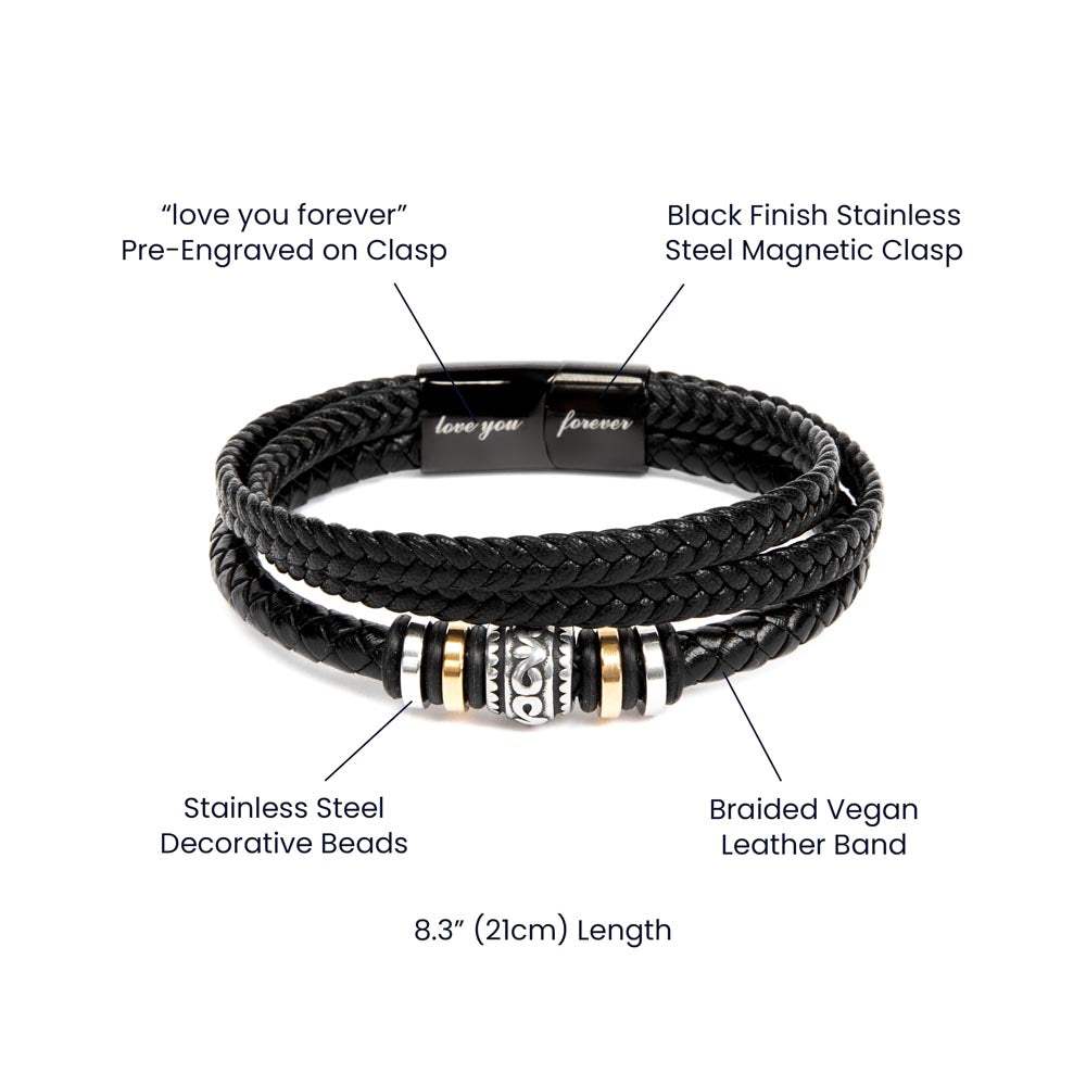 Looking for a gift as meaningful as the incredible man in your life? This Men's Leather Bracelet is the perfect choice! Engraved with a touching quote, it’s more than just an accessory—it's a heartfelt reminder of your love and gratitude for your dad. Ideal for birthdays, Father’s Day, or any occasion to celebrate the bond you share, this bracelet combines timeless style with deep sentiment, making it a gift he'll cherish forever.