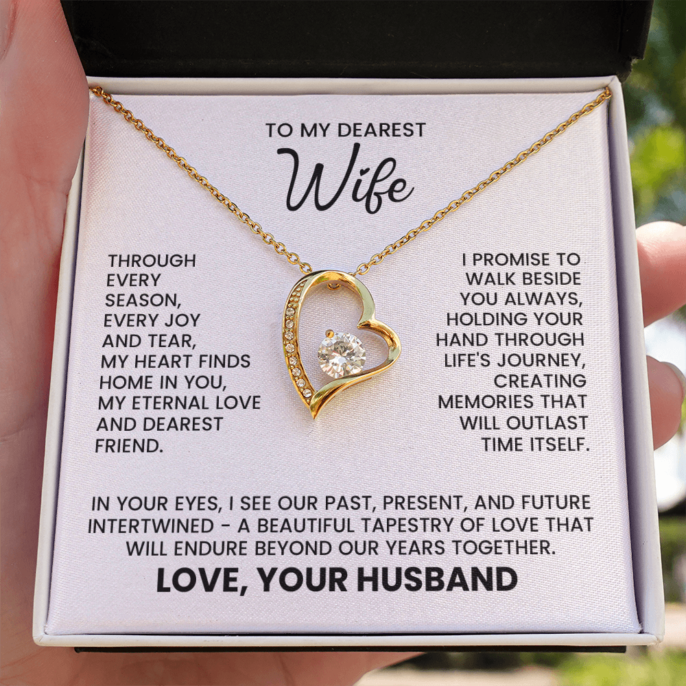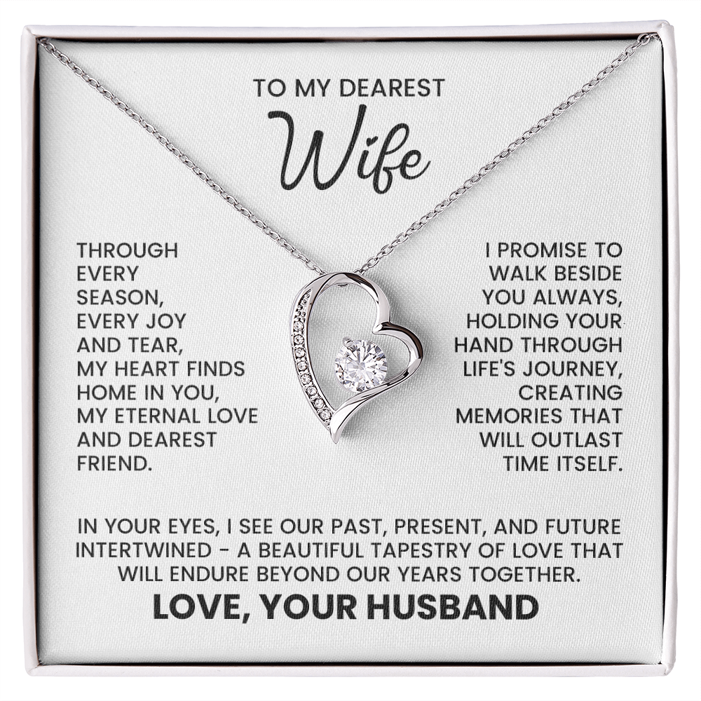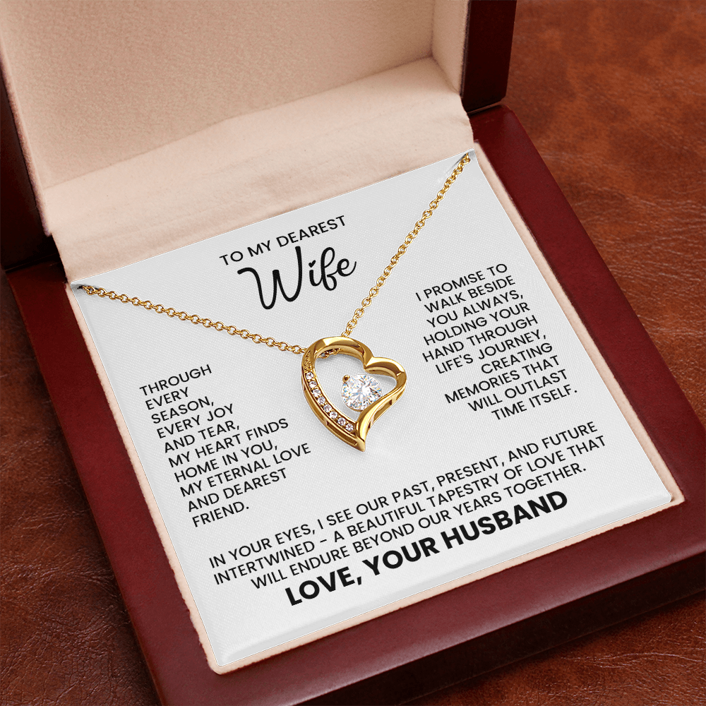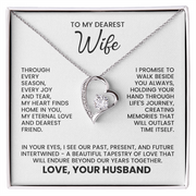 Show your wife just how deeply she's treasured with the breathtaking Forever Love Necklace. At its heart lies a brilliant 6.5mm CZ crystal, representing the radiant love you share, encircled by a polished heart pendant that sparkles with smaller crystals - each one reflecting a precious moment you've built together.